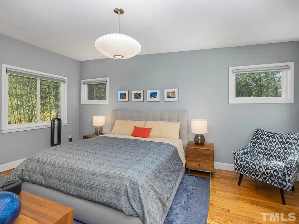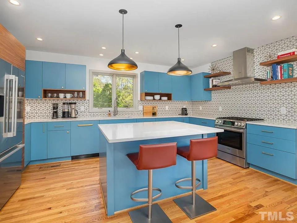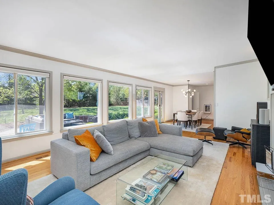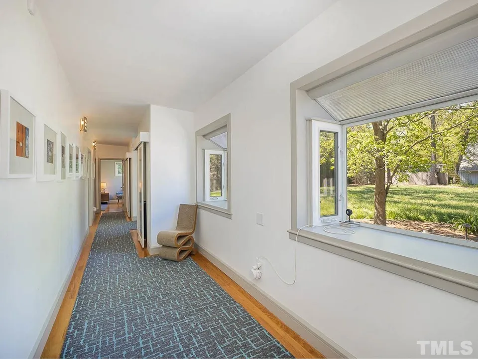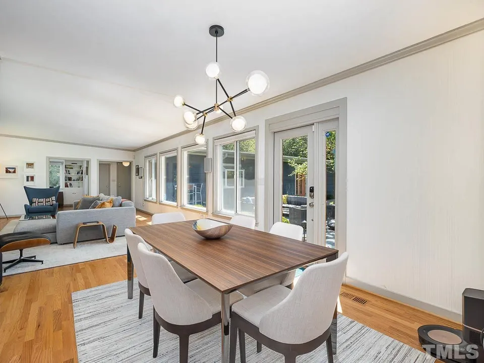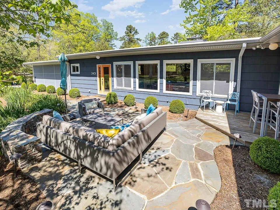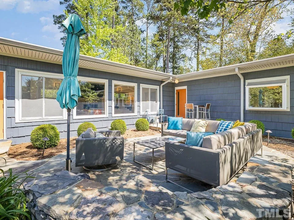 Stunning ! Mid-century modern property by architect William Sprinkle in Durham's Duke Forest neighborhood . The 3-bedroom, 2.5-bath home is close to Duke's West Campus, University Hospital, and Durham's downtown. Open floorplan, with a chef's kitchen featuring Bosch stainless steel appliances, Calacatta quartz countertops, and Miralis cabinetry. Bedrooms complete with electronic blackout and light-filtering smart shades. Designer lighting fixtures, new HVAC, WH, roof, gutters, driveway, and a 21-foot wide two-car garage. Smart window treatments, dimmers, doorbell, and keyless touchpad door lock, with separate office/family room, and ample closet/storage space. The landscaped 0.61-acre backyard is perfect for entertaining, with a custom stone patio, outdoor lighting, and smart-enabled greenery. A 5k Al Buehler trail is steps away. Live your best life at this unique Triangle property.