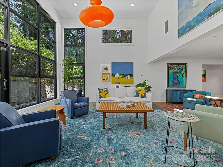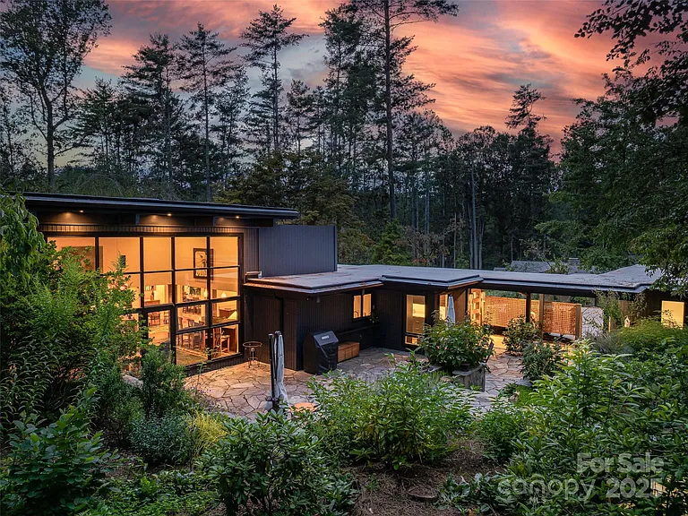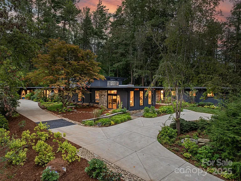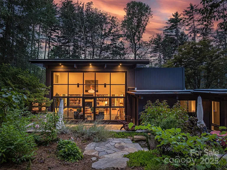 “Originally built in 1966 by renowned Asheville architect Lawrence Traber, 5 Brookside is widely considered one of his finest mid-century modern works. Designed around Traber’s philosophy of harmony with nature, the home is set on 1.34 acres of lush gardens in a private, wooded setting—just minutes from downtown Asheville. Meticulously and respectfully reimagined, the home blends iconic design with extensive high-end upgrades. Steel beam construction provides lasting structural integrity. Recent exterior improvements include fresh paint (2024), a double-thickness TPO roof with a 20-year warranty (2025), new gutters, and four new skylights that flood the interior with natural light. Inside, the home features new Brazilian cherry hardwood floors, paneled columns, and new 8" baseboards throughout. Sierra Pacific windows enhance both aesthetics and efficiency. Comfort and reliability are ensured with a Generac whole-house generator, Rheem HVAC and heat pump system (2023) with five zones, a new air handler (2025), and a Navien high-efficiency tankless water heater with recirculating pump (2023). New sewer and water lines were installed in 2025. The fully remodeled kitchen (2024) is a showpiece, featuring premium Fulgor appliances, a 48" stainless Sub-Zero refrigerator, and a newly added butler’s pantry. A separate laundry room with Miele appliances adds everyday convenience. A partially finished lower-level room offers flexibility for a home gym, music room, playroom, or office. A dramatic two-story wall-of-glass Garden Room addition (2024) creates a striking connection to the outdoors and opens to an expanded back terrace. Outdoor features include a flagstone retaining wall, hidden drainage, a soapstone gardening shelf, and a welcoming stone patio ideal for entertaining. The primary suite was fully renovated and expanded in 2025, creating a peaceful retreat with a luxurious new bath and a spacious walk-in closet with custom built-ins. Thoughtful lighting throughout highlights art and architecture, including select permanent installations with custom metal ironwork by local artisans Screaming Hot Iron. Additional improvements include an expanded circular concrete driveway (2024) with new exterior lighting and numerous system upgrades that make this home as functional as it is beautiful. A rare opportunity to own a thoughtfully modernized architectural landmark, 5 Brookside offers timeless mid-century design, exceptional craftsmanship, and a tranquil natural setting—just moments from the heart of Asheville.” - Beverly-Hanks Asheville Downtown Real Estate Company